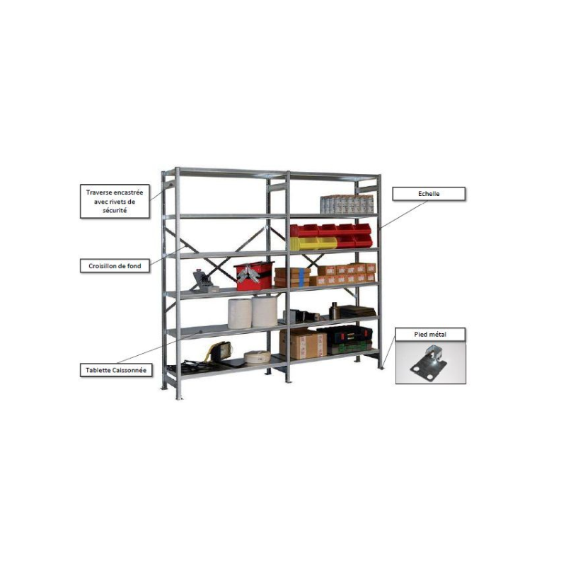 4 niveaux / Profondeur 500mm / Hauteur échelle 2225mm