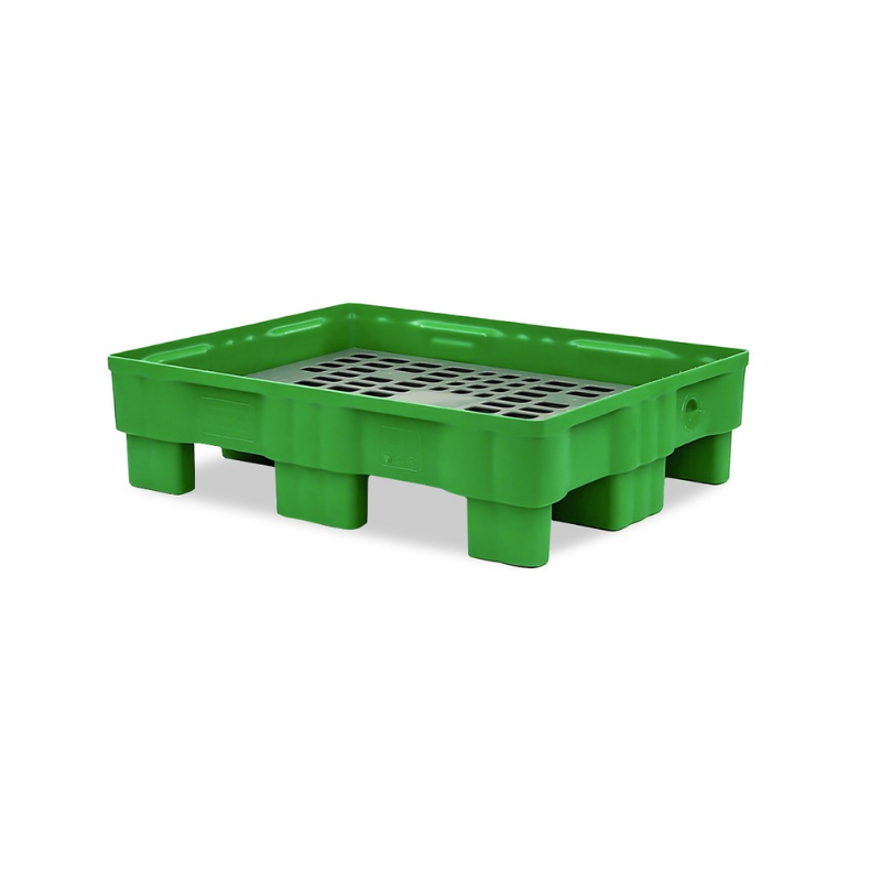 Plateforme de rétention en polyéthylène pur pour le stockage de fûts ou bidons. Caillebotis en polyéthylène amovible.Rétention : 2 x 150 litres