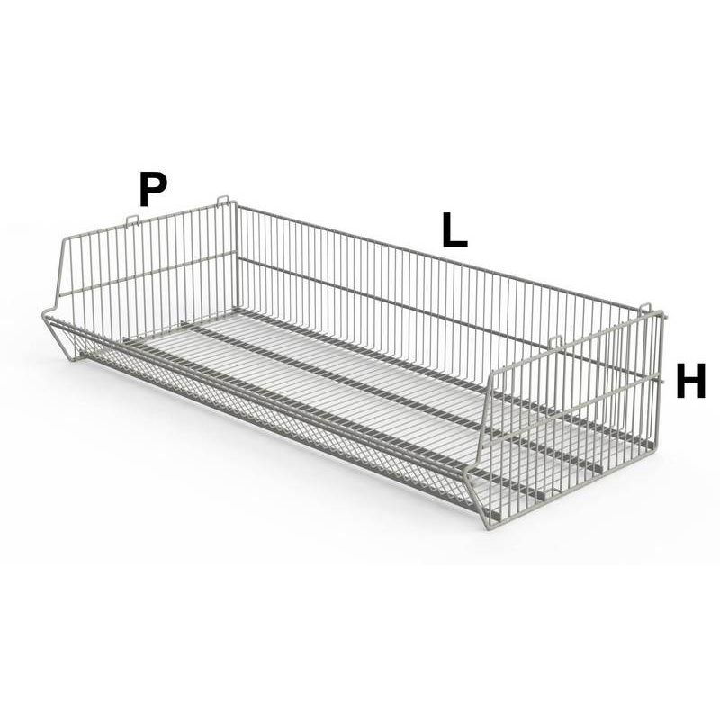 Roll-Conteneur en acier zingué 3 côtés maille 105x350mm. Roll pour le stockage de produits en vrac ou en hauteur (livré sans étagère) .