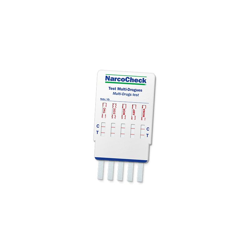 Ce test permet le dépistage salivaire simultané des 5 drogues les plus consommées actuellement.